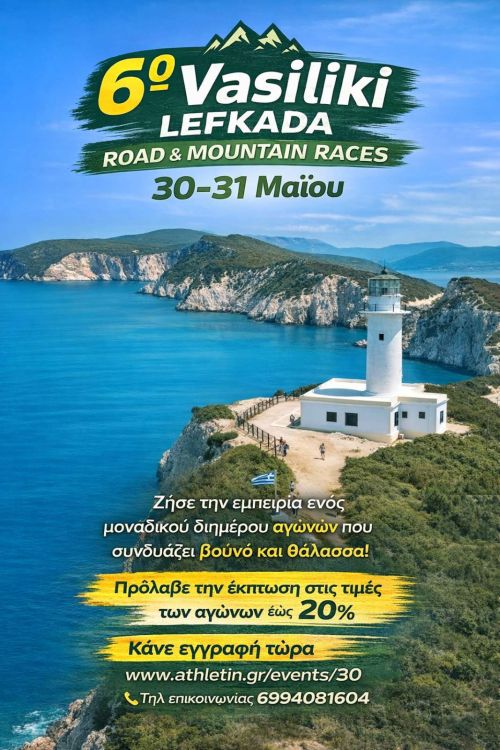 Η Τουριστική Εταιρεία Λευκάδας και ο Σύλλογος Τουρισμού και Πολιτισμού ευρύτερης περιοχής Βασιλικής Λευκάδας διοργανώνουν τουs 6ουs Αγώνες “VASILIKI LEFKADA ROAD & MOUNTAIN RACES” το Σάββατο 30 Μαϊου 2026 αγώνα δρόμου 13 χλμ (Πόρτο Κατσίκι – Βασιλική) και την Κυριακή 31 Μαϊου 2026 αγώνες ορεινού τρεξίματος 10 χλμ, 20 χλμ και 42 χλμ στο όρος Σταυρωτάς στην περιοχή της νότιας Λευκάδας με αφετηρία και τερματισμό την Βασιλική.